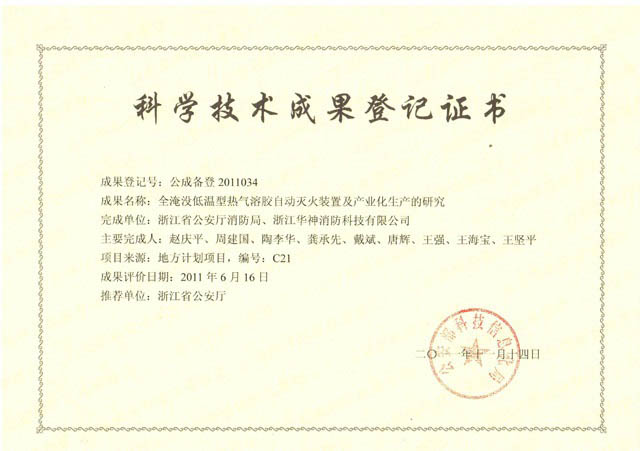 科学技术成果登记证书