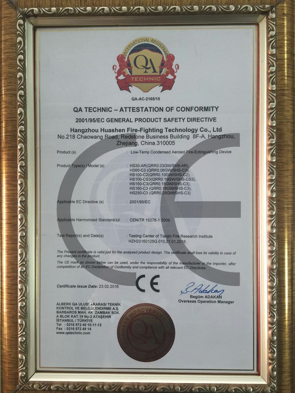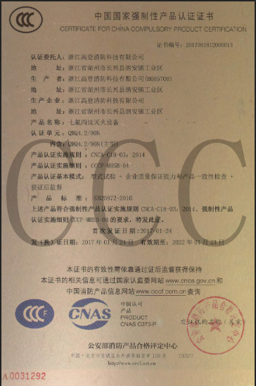 七氟丙烷“3C”证书