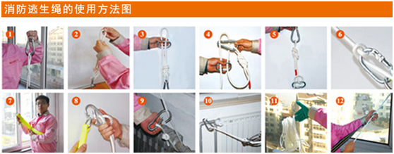 消防逃生绳是火灾逃生中的重要工具之一,在高层建筑中使用较多。火场疏散逃生时,遇到无路可逃可从窗口处使用消防逃生绳快速逃生,因为逃生绳一般都是在高层使用,对逃生者带来一定的危险性,学习消防逃生绳的使用方法至关重要,以下是消防逃生绳的使用方法。