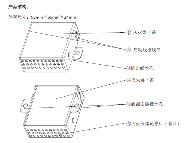 启动方式及要求:①热自启动;175±10℃;②电启动:DC12~24V,350mA