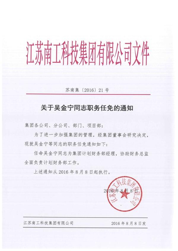 关于吴金宁同志职务任免的通知