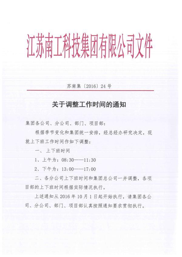 关于调整工作时间的通知