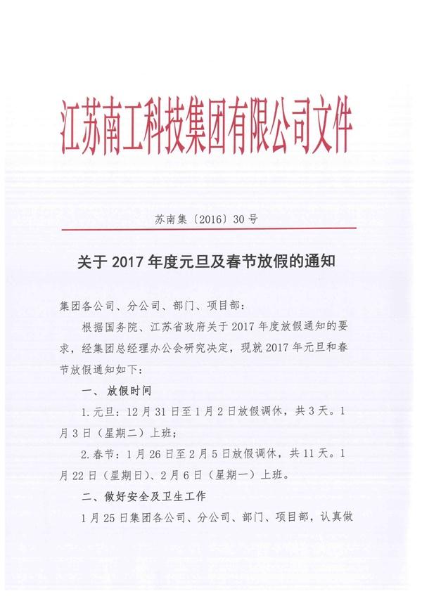 您的位置:集团首页 >> 新闻中心 >> 集团公告 >> 关于2017年度元旦及春节的放假通知