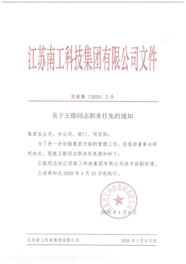 关于王勖同志职务任免的通知