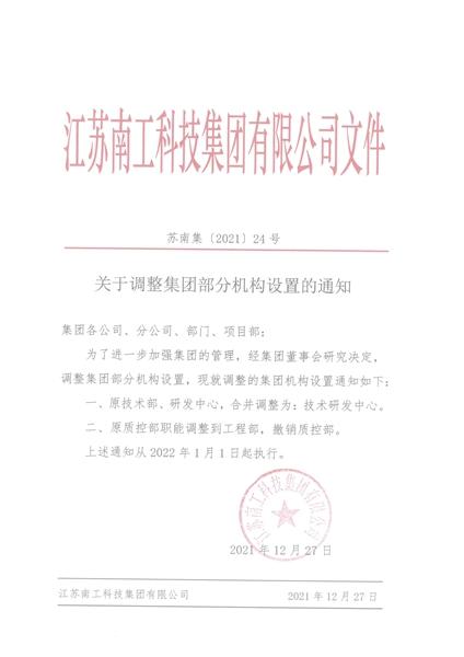 关于调整集团部分机构设置的通知