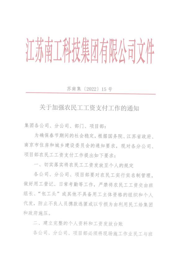 关于加强农民工工资支付工作的通知