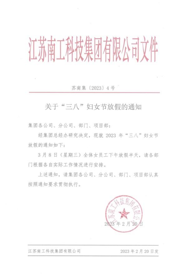 您的位置:集团首页 >> 新闻中心 >> 集团公告 >> 关于“三八”妇女节放假的通知