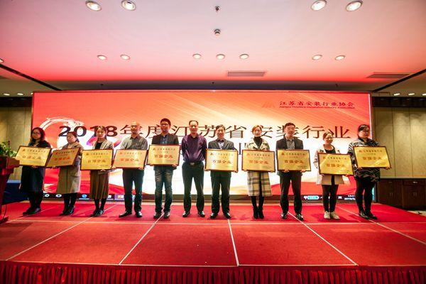 会议表彰了江苏省安装行业2018年度“百强企业”、“品牌企业家”。江苏k1体育科技集团有限公司荣获江苏省安装行业2018年度“百强企业”称号,集团执行董事陈俊桦荣获“金牌企业家”称号,集团常务副总经理夏鸣荣获“银牌企业家”称号。