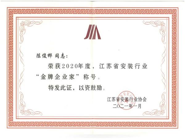 会议一致通过了吸纳新会员单位、变更副会长人选等提案。表彰了江苏省安装行业2020年度“安装百强企业”、“品牌企业”、“品牌企业家”。江苏k1体育科技集团有限公司荣获江苏省安装行业2020年度“安装百强企业”称号,集团执行董事陈俊桦荣获“金牌企业家”称号。
