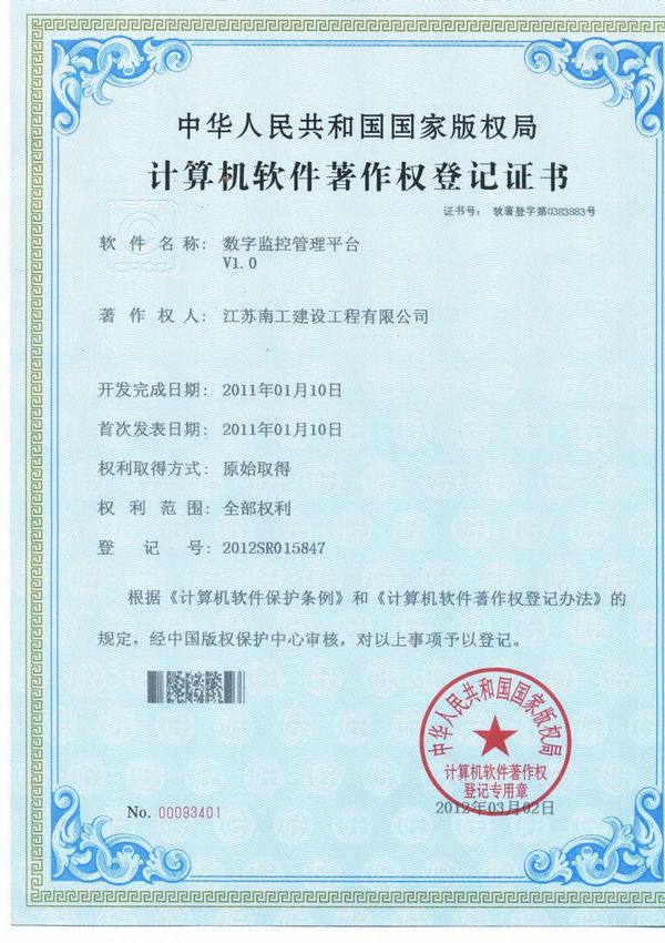 您的位置:集团首页 >> 科技创新 >> 软件产品 >> 数字监控管理平台证书